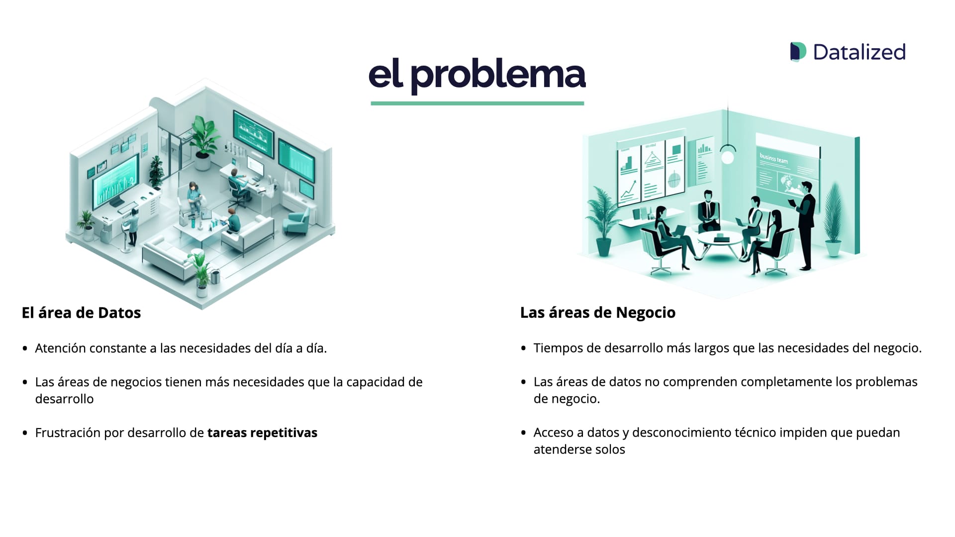 - El equipo de datos, que opera al límite de su capacidad, se convierte en un cuello de botella para toda la organización.