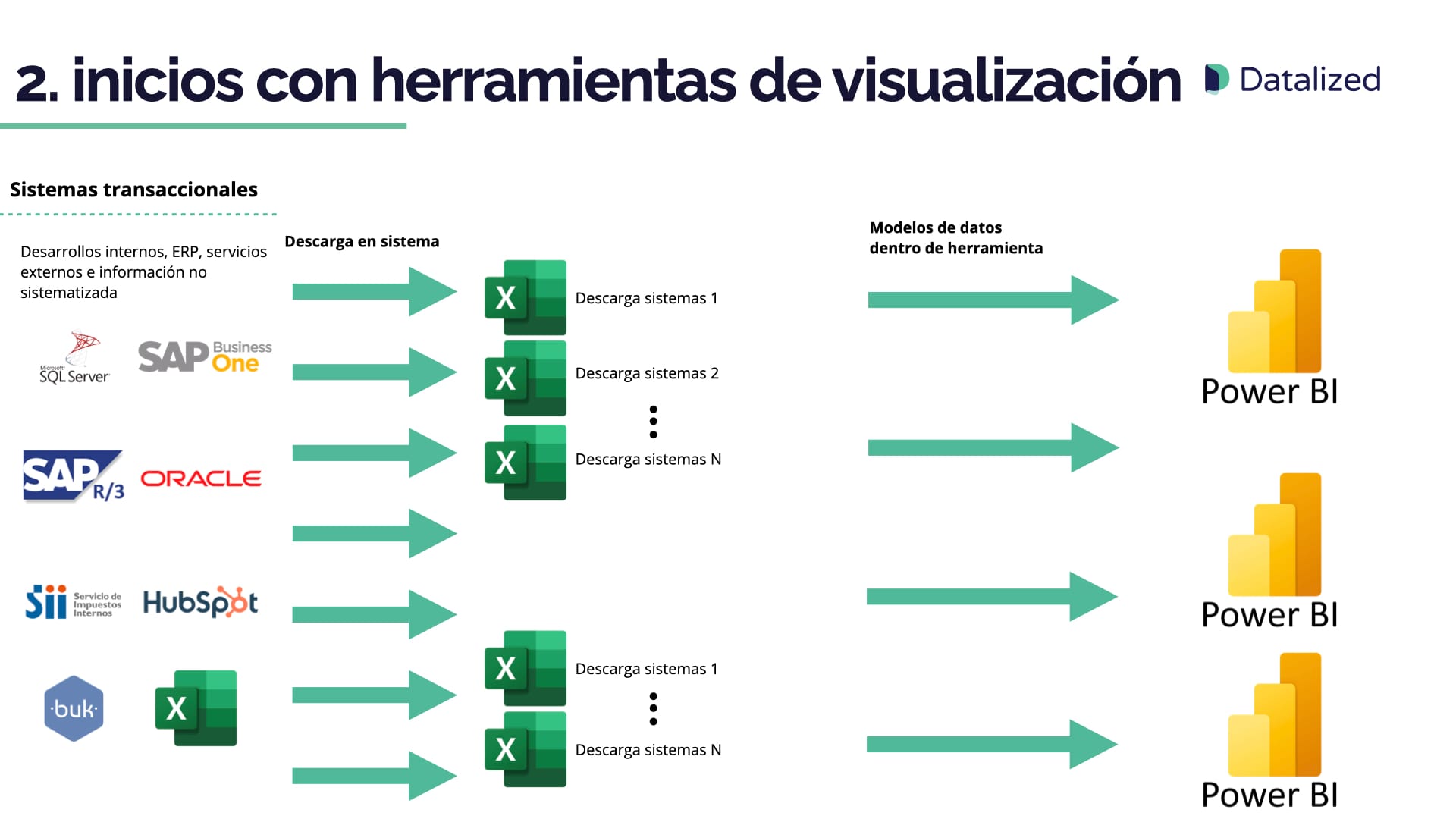 - Se implementan soluciones como Power BI, pero aún con procesos manuales de datos.