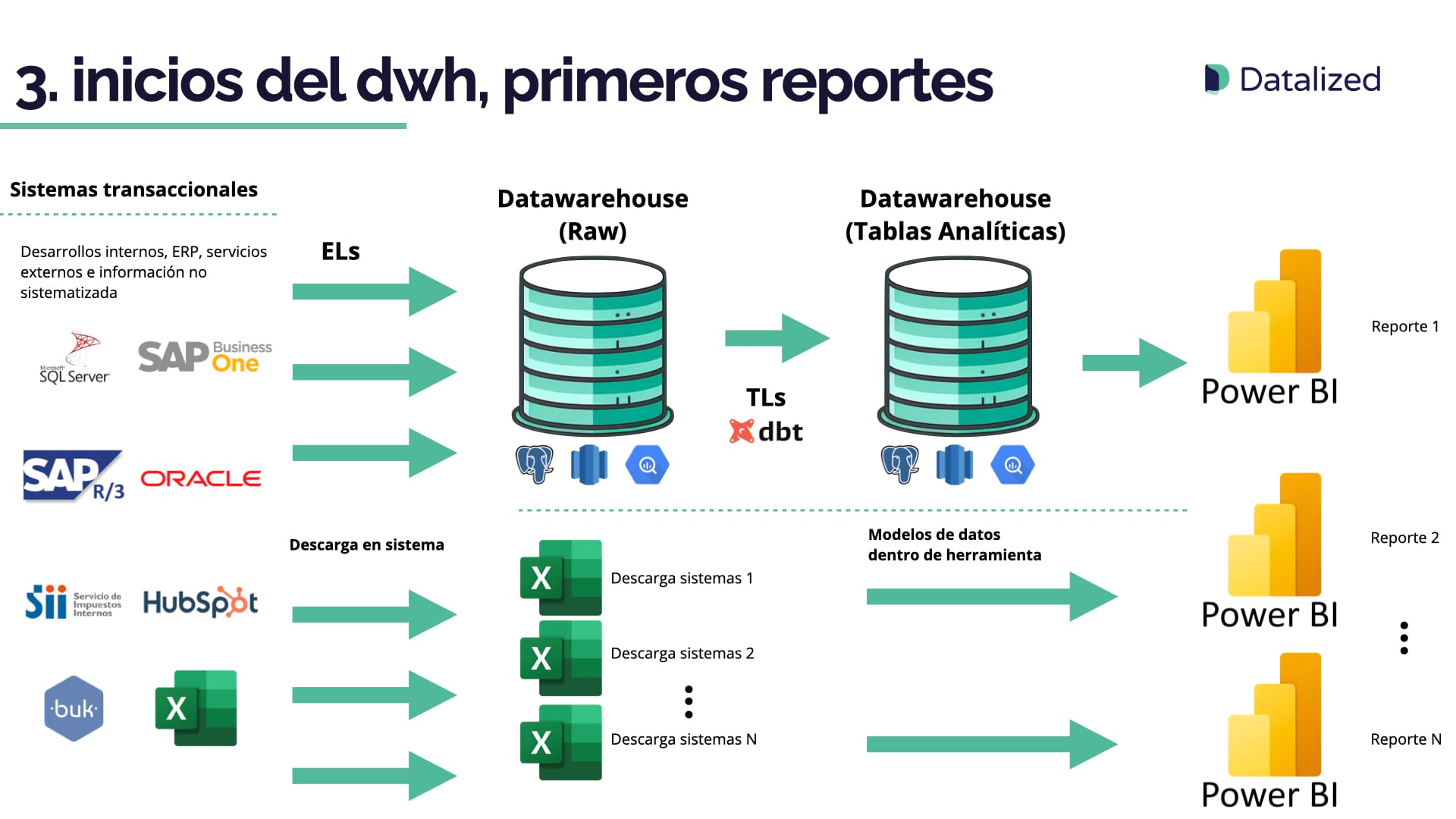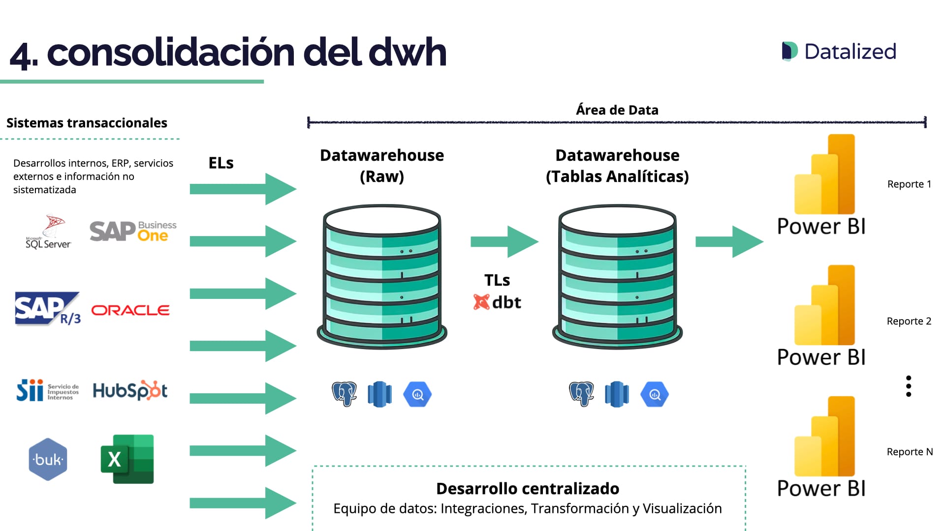 - El Data Warehouse se convierte en la principal fuente de información, pero aún hay dependencia del equipo de datos.